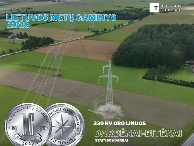 Gruodžio 10 d. Vilniuje 29-ąjį kartą įteikti Lietuvos pramonininkų konfederacijos (LPK) rengiamo kasmetinio konkurso „Lietuvos metų gaminys“ apdovanojimai. Statybos ir statybos medžiagų pramonės kategorijoje sidabro medalį pelnė bendrovės įgyvendintas projektas „330 kV oro linijos Darbėnai-Bitenai statybos darbai". Darbėnų–Bitėnų 330 kV elektros perdavimo linijos projektas yra strategiškai itin reikšmingas Lietuvai, nes tiesiogiai prisideda prie Baltijos šalių elektros tinklų sinchronizacijos su kontinentinės Europos sistema, stiprinant šalies energetinę nepriklausomybę, tiekimo patikimumą ir nacionalinį saugumą.