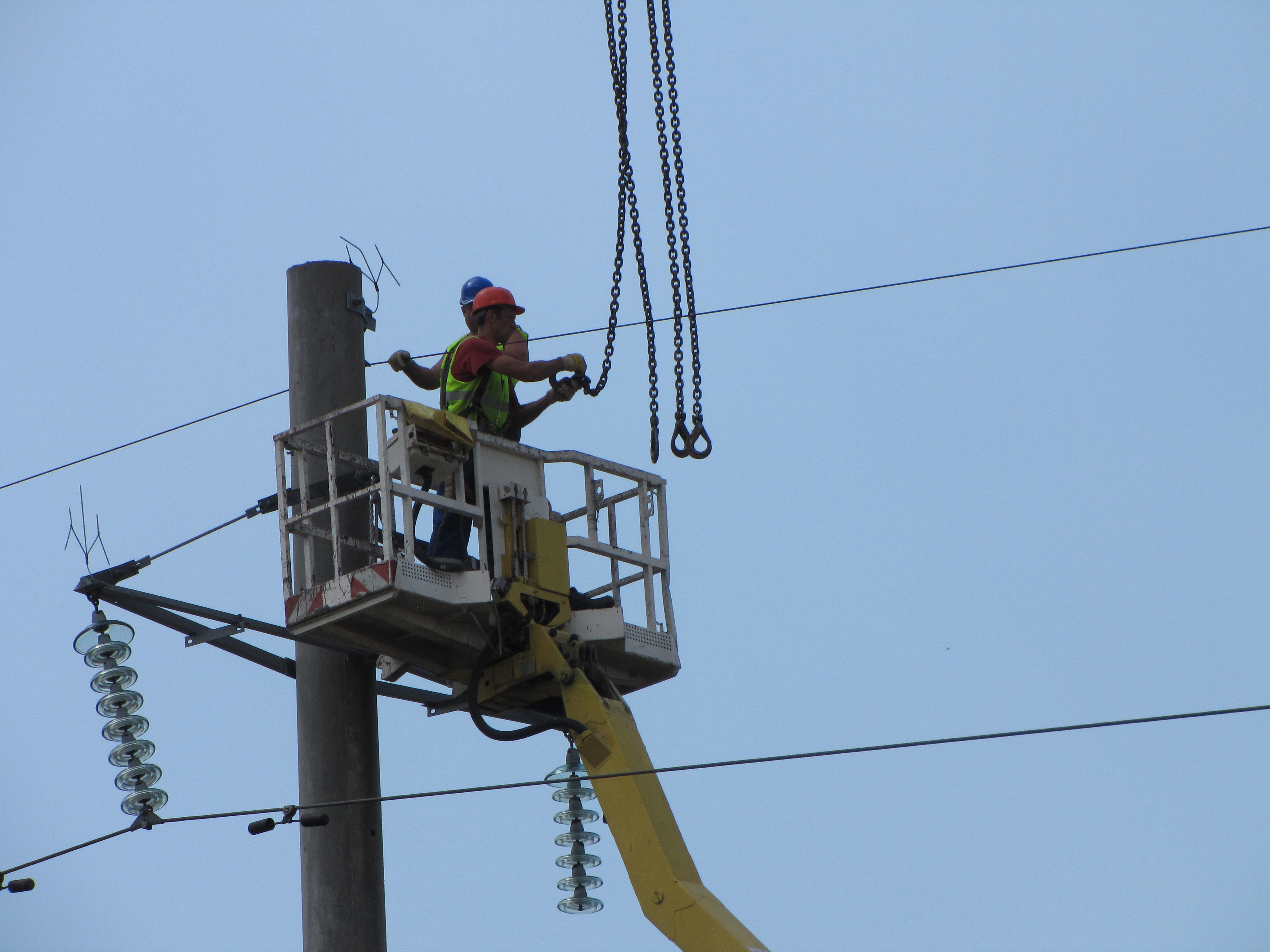 Panaudota speciali technika – auto kranas ir du auto bokšteliai – oro linijų atramų demontavimui.