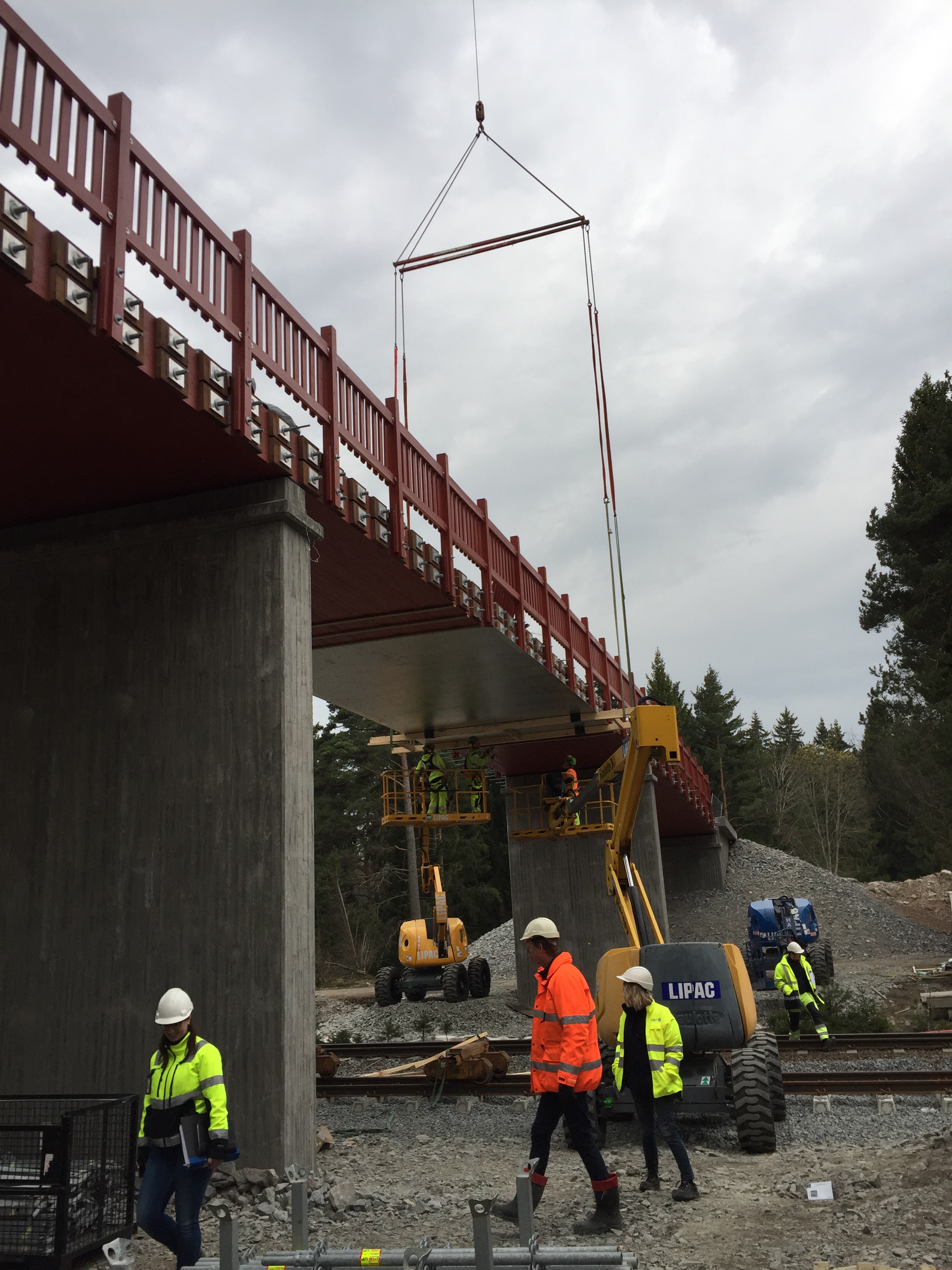 Pastatytos metalinės ir medinės estakados virš geležinkelio.