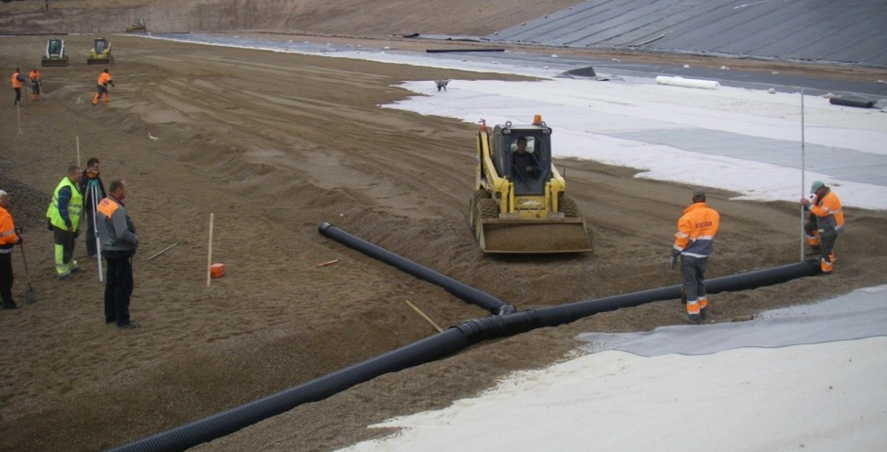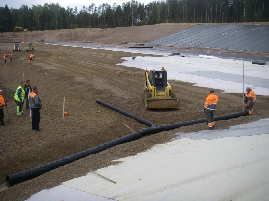 Įrengta drenuojamoji filtrato surinkimo sistema ir vamzdynai, nukreipiantys filtratą į valymo įrenginius.