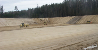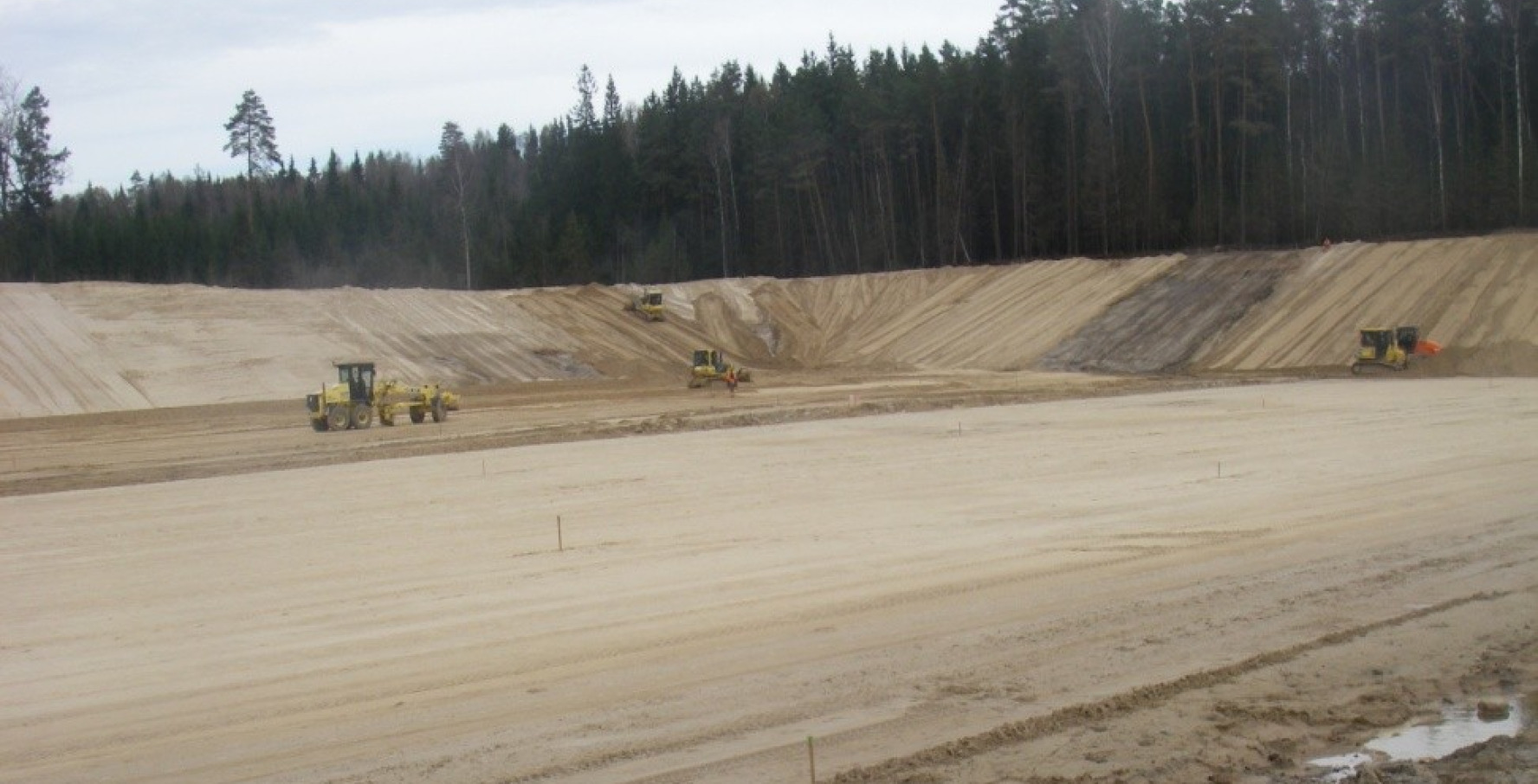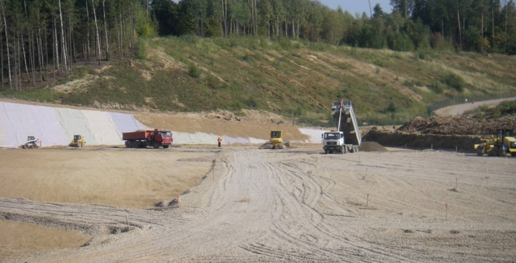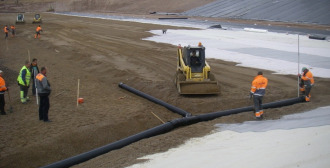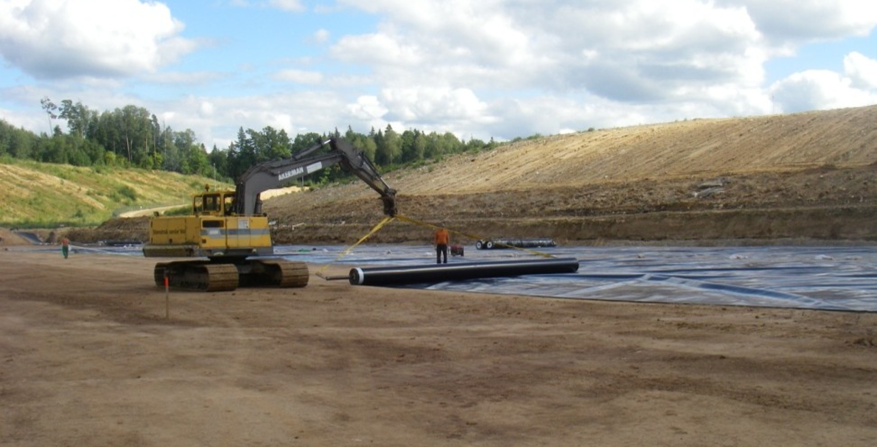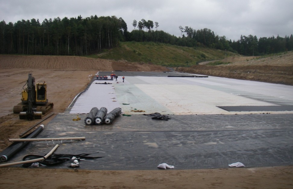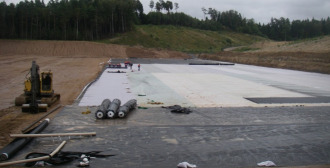 Paklota 19 500 m² HDPE šiurkščios geomembranos plėvelės ant šlaitų.