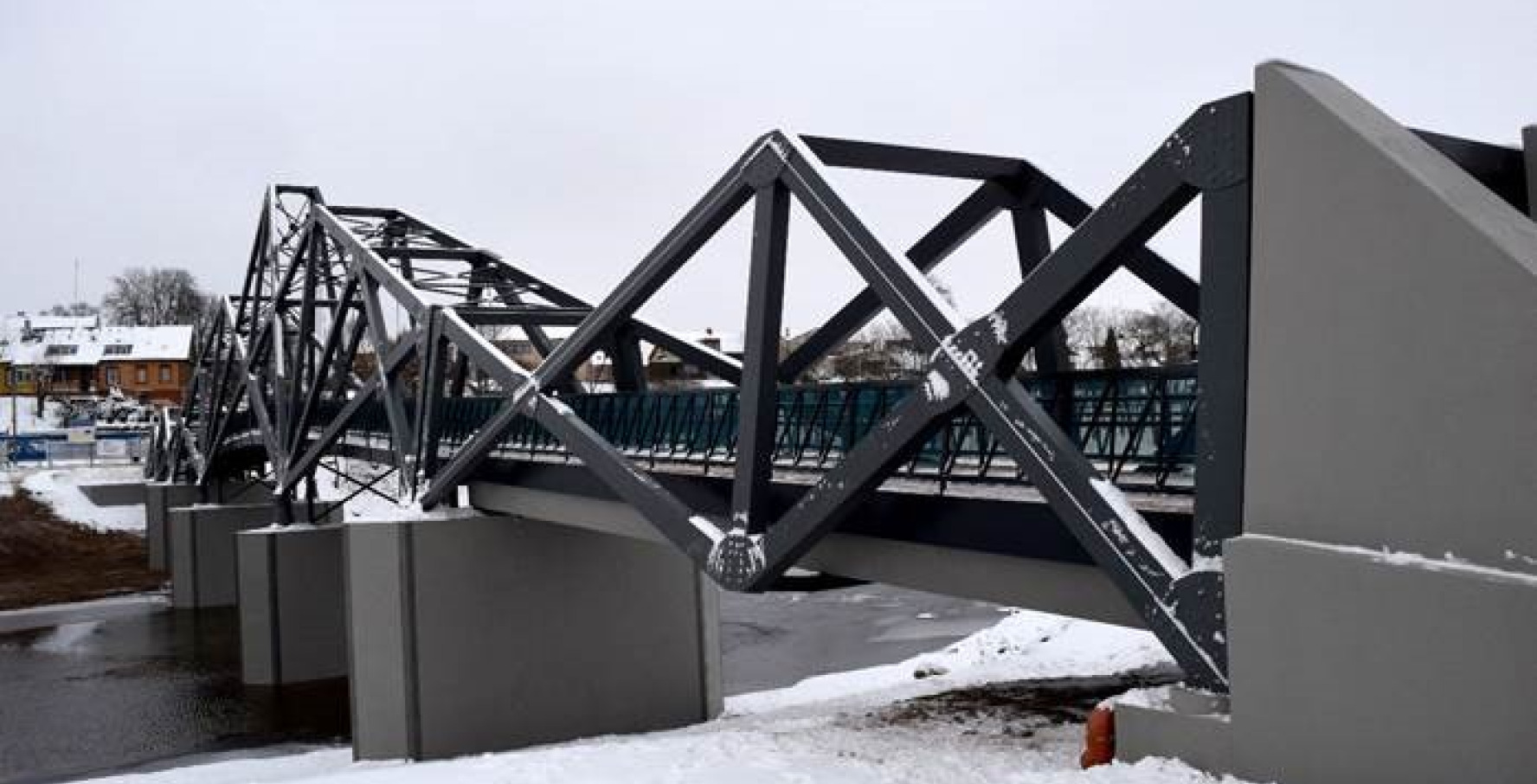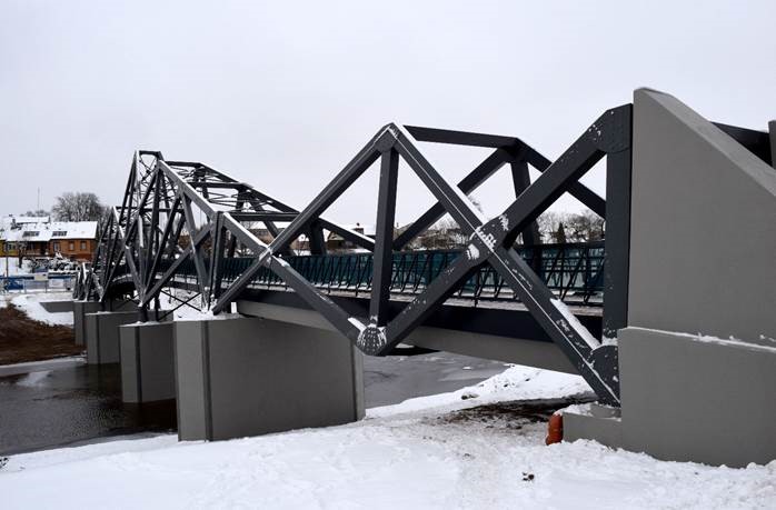 vykdžius buvusio tilto konstrukcijų ardymo darbus, įrengti gręžtiniai poliai, skirti tilto atramai, taip pat įrengti pamatai. Išardžius buvusią tilto atramą, pastebėta, kad siekiant užtikrinti statomo tilto tvirtumą, būtina įrengti papildomus gręžtinius polius.Vietoj buvusių penkių tilto atramų įrengtos keturios gelžbetoninės atramos. Vietoj dešiniojo kranto galinės atramos įrengta nauja gelžbetoninė, o kairiojo kranto gelžbetoninė-plytų mūro atrama rekonstruota. Įrengus tilto viršutinę dalį (atraminius guolius, tilto paklotą laikančias konstrukcijas, gelžbetoninį paklotą ir kt.), iš klijuotos medienos ir plieninių sijų buvo įrenginėjamos medinės santvarinės konstrukcijos.