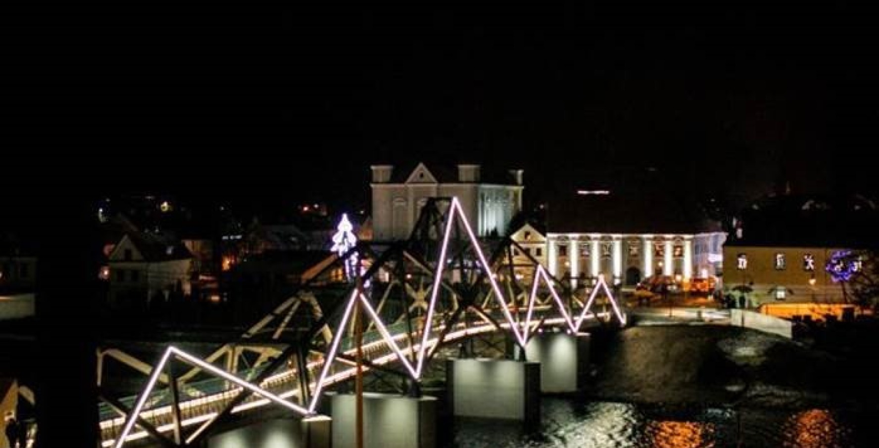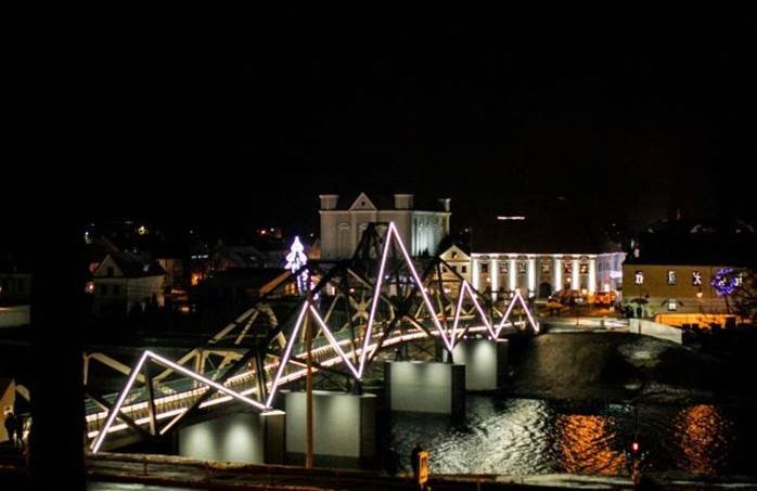 Naujasis pėsčiųjų tiltas per Nevėžio upę išsiskiria ir modernia apšvietimo sistema - įrengtas trijų tipų apšvietimas: funkcinis, dekoratyvinis ir proginis. Funkcinis apšvietimas apšviečia tilto taką, dekoratyvinis apšvietimas, įrengtas ant tilto santvarų išorinės pusės LED juostomis, pabrėža tilto kontūrą bei LED prožektoriais išryškina tilto atramas, o proginis apšvietimas kas kartą gali būti skirtingas. 96 metrų ilgio ir 3,66 m pločio pastatytas tiltas – iš esmės kitoks nei senasis ir analogų Lietuvoje neturintis pėsčiųjų inžinerinis statinys.