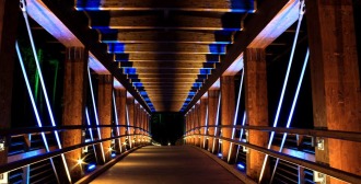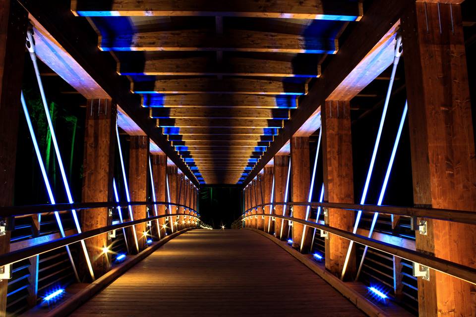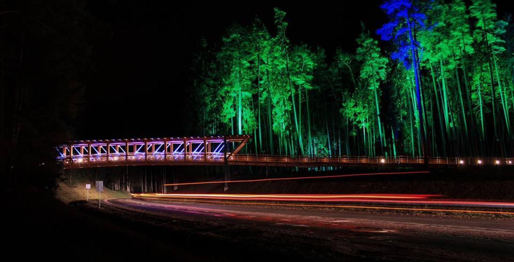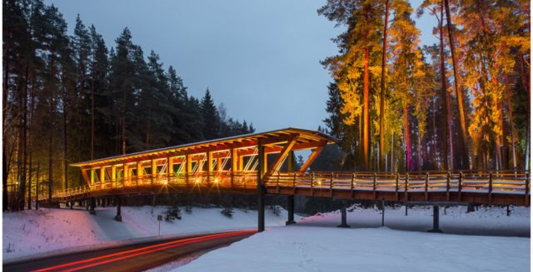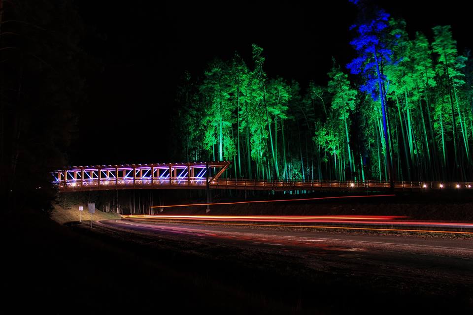 Šis medinis pėsčiųjų tiltas pastatytas virš kelio P103 Dobelė - Bauskė, 17,75 km. Naujasis pėsčiųjų tiltas veda iš automobilių stovėjimo aikštelės į Tervetės gamtos parką. Bendras statinio ilgis - 87 m; statinio plotis - 4,1 m.