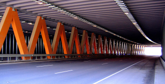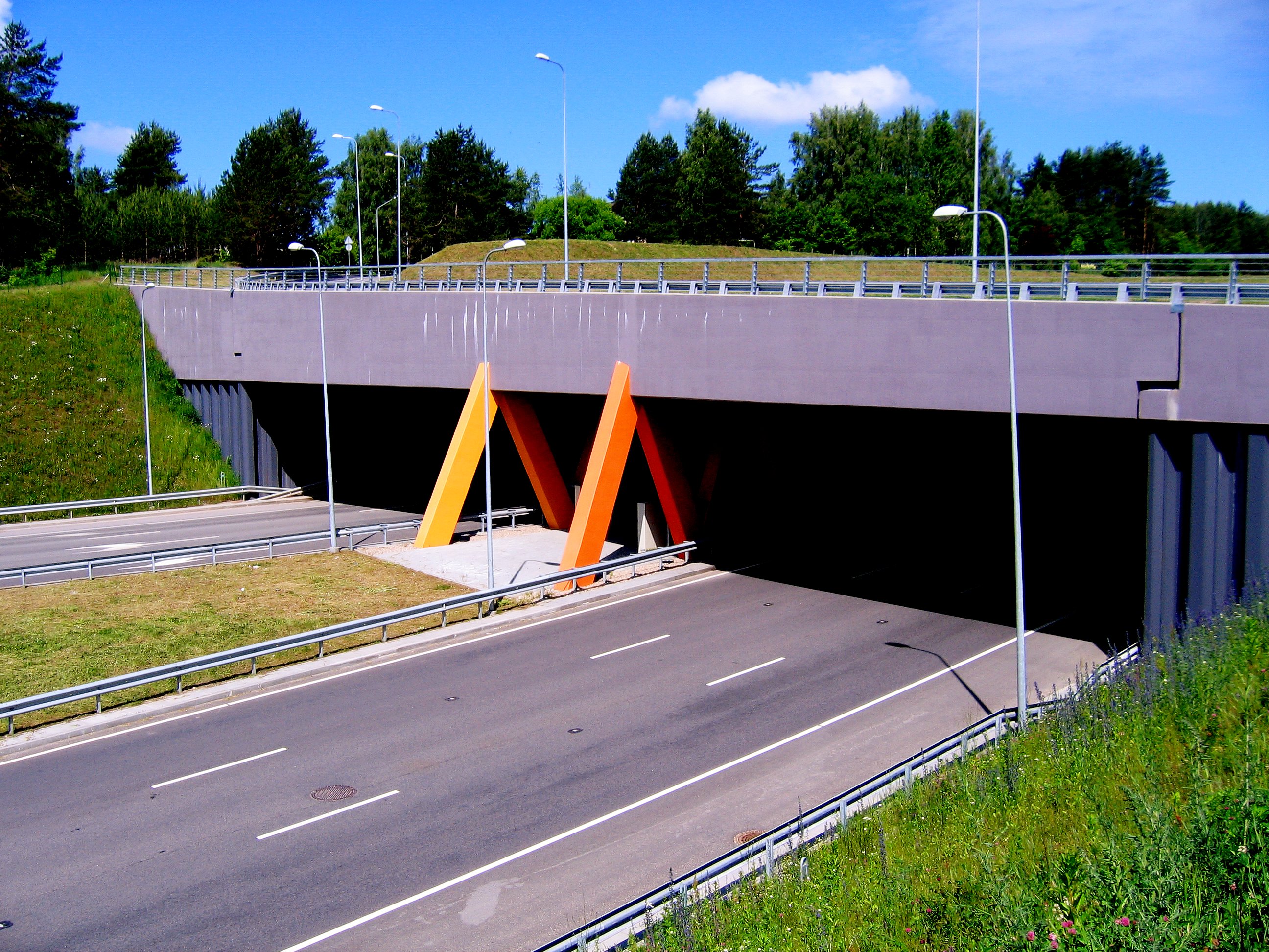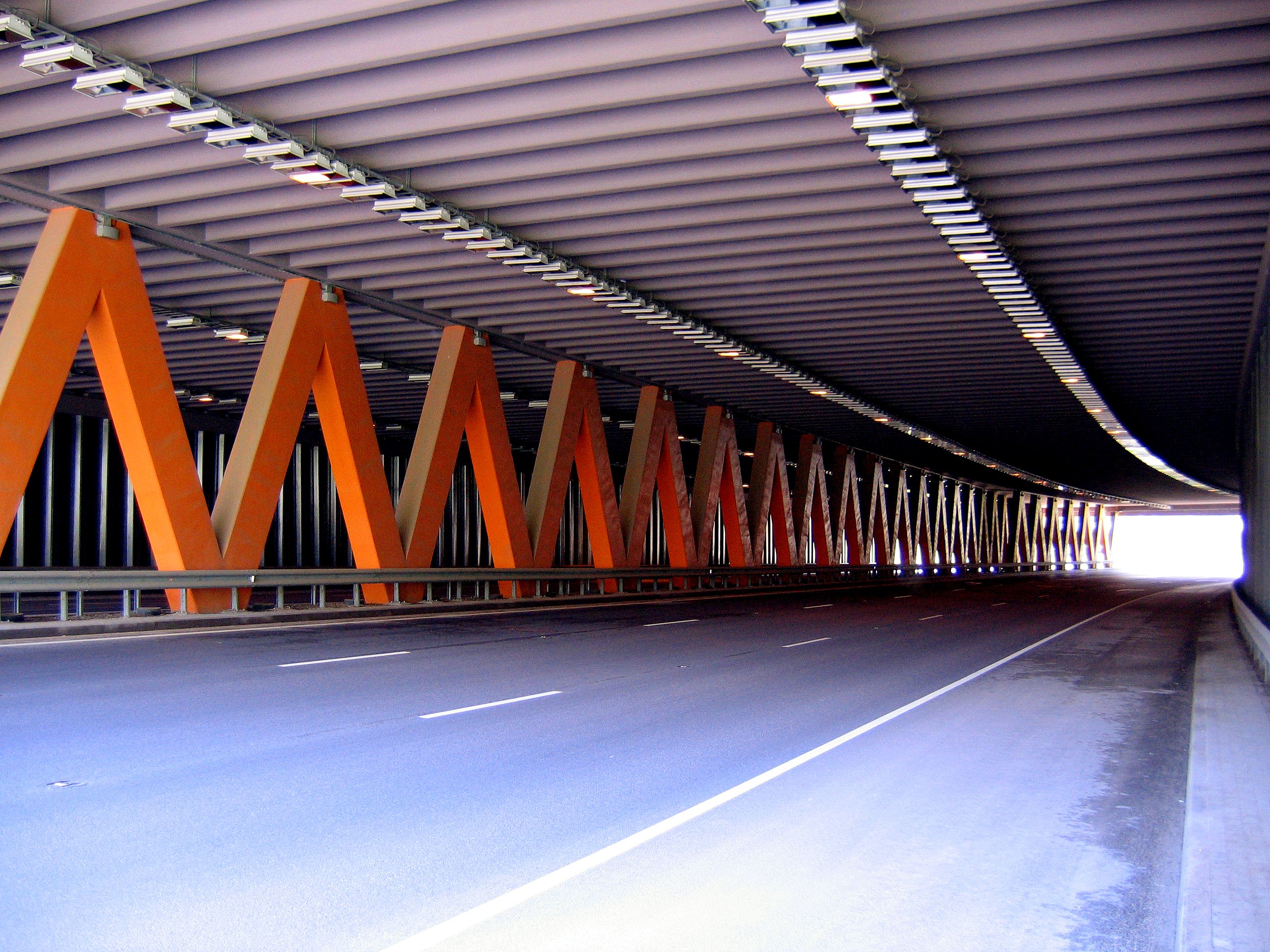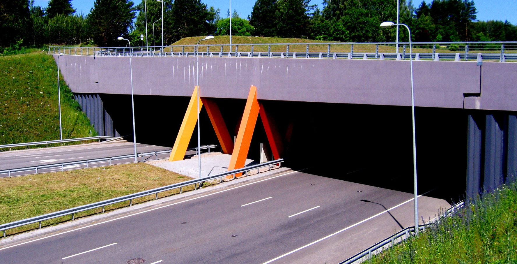 Vilniaus vakarinio aplinkkelio statybos I etapo metu, buvo pastatytas 150,57 m ilgio, keturių eismo juostų ir 36,42-48,29 m pločio tunelis. Tunelio kraštinių atramų įrengimui buvo panaudota metalinė spraustasienė. Gelžbetoninė ažūrinė tarpinė atrama suteikia tuneliui architektūrinį savitumą.