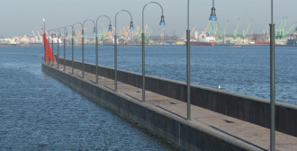 Remontuotas molas, išorinė bangolaužio dalis padengta epoksidine mastika.