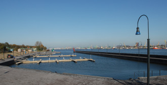 Įrengti sunkaus tipo pontonai su švartavimosi pirštais pirmajai krantinei (36 laivų stovėjimo vietos).