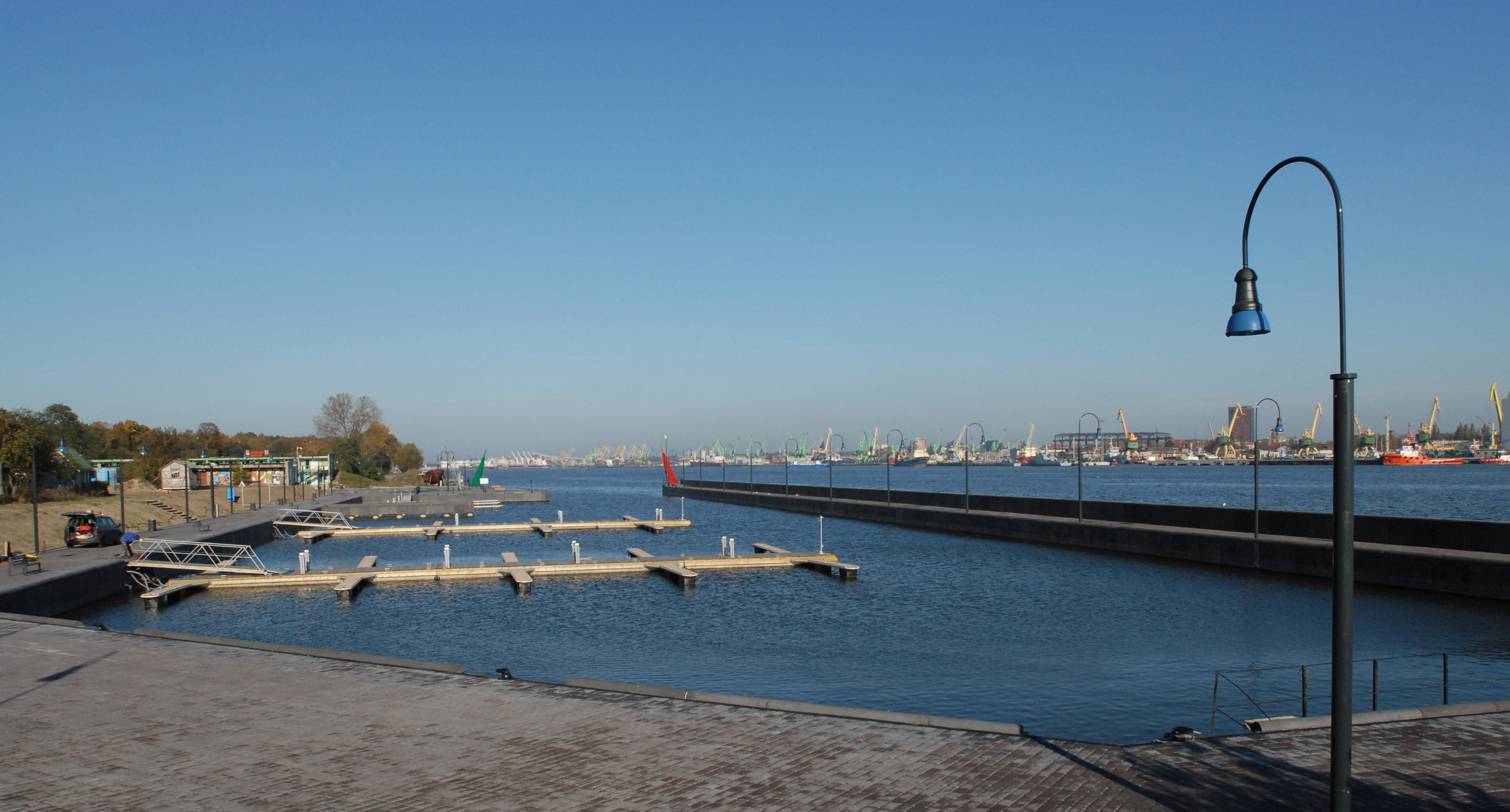 Prie antrosios krantinės įrengti pontonai su 29 švartavimosi vietomis, slipas švertbotų iškėlimui.